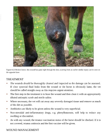 Figure 8.22 Broken knees: this wound has gone right through the skin; scarring from an earlier similar injury can be seen on