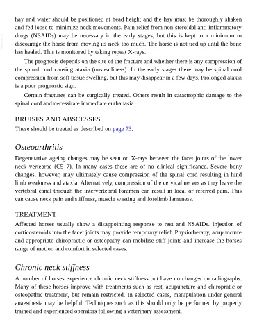and fed loose to minimize neck movements. Pain relief from non-steroidal anti-inflammatory