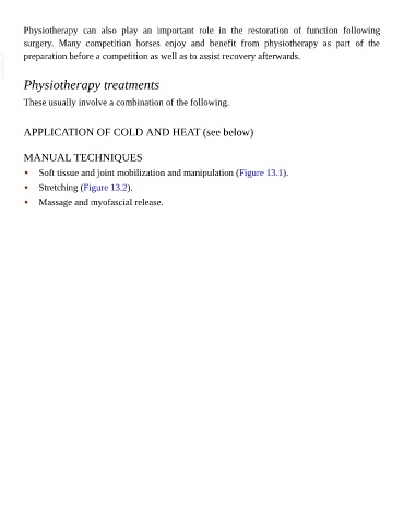 surgery. Many competition horses enjoy and benefit from physiotherapy as part of the