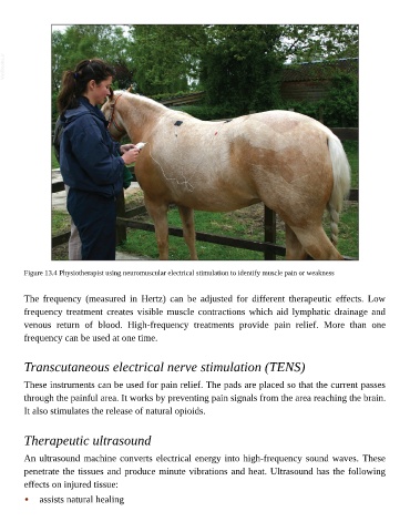 Figure 13.4 Physiotherapist using neuromuscular electrical stimulation to identify muscle pain or weakness