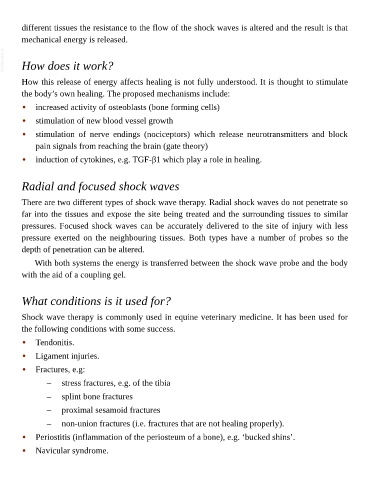different tissues the resistance to the flow of the shock waves is altered and the result is that