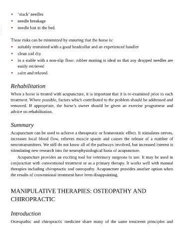 When a horse is treated with acupuncture, it is important that it is re-examined prior to each