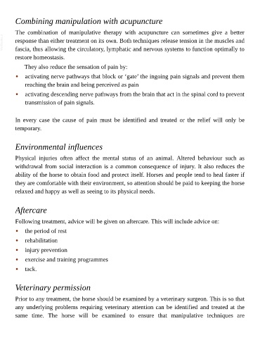 same time. The horse will be examined to ensure that manipulative techniques are