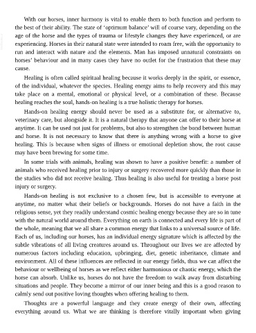 behaviour or wellbeing of horses as we reflect either harmonious or chaotic energy, which the