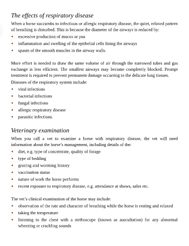 When you call a vet to examine a horse with respiratory disease, the vet will need
