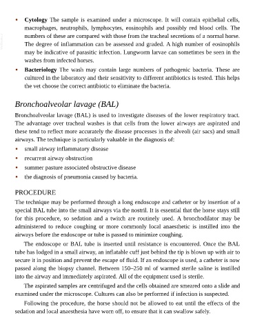 special BAL tube into the small airways via the nostril. It is essential that the horse stays still