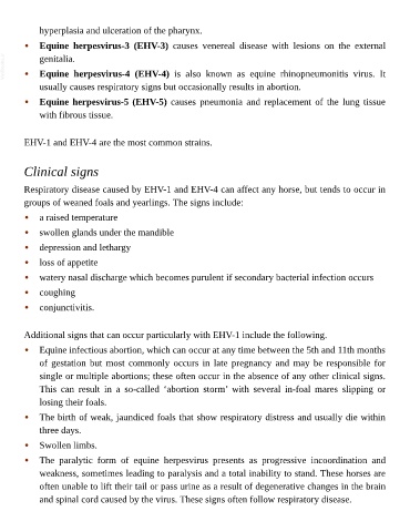 • Equine herpesvirus-3 (EHV-3) causes venereal disease with lesions on the external