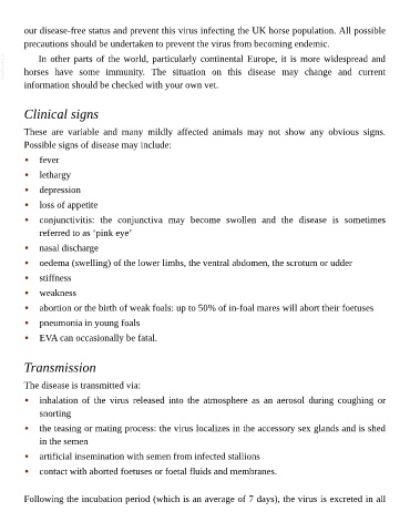 our disease-free status and prevent this virus infecting the UK horse population. All possible