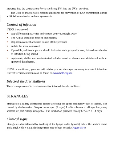 • if possible, a different person should look after each group of horses, this reduces the risk