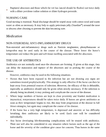 Ruptured abscesses and those which the vet has lanced should be flushed out twice daily