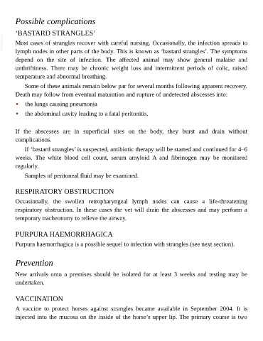 lymph nodes in other parts of the body. This is known as ‘bastard strangles’. The symptoms
