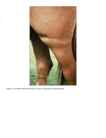 VetBooks.ir Figure 15.6 Swollen limbs and sheath of a horse with purpura haemorrhagica