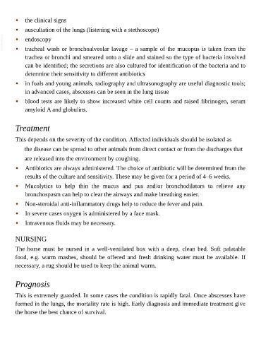 • in foals and young animals, radiography and ultrasonography are useful diagnostic tools;