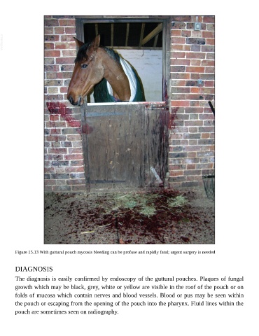 Figure 15.13 With guttural pouch mycosis bleeding can be profuse and rapidly fatal; urgent surgery is needed