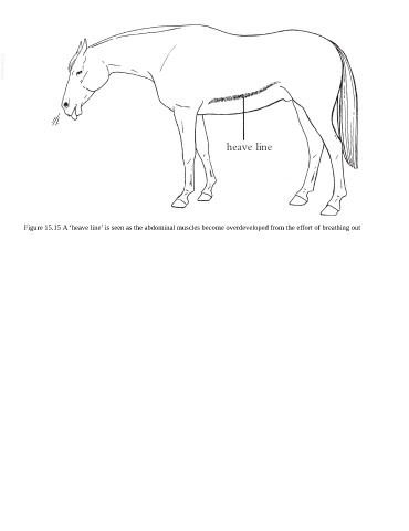 VetBooks.ir Figure 15.15 A ‘heave line’ is seen as the abdominal muscles become overdeveloped from the effort of breathing out