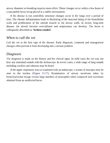 disease, the alveoli become over-inflated and emphysema can develop. The horse is