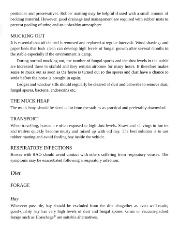 pesticides and preservatives. Rubber matting may be helpful if used with a small amount of