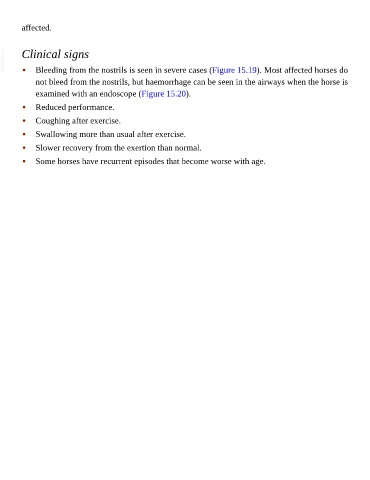 Bleeding from the nostrils is seen in severe cases (Figure 15.19). Most affected horses do
