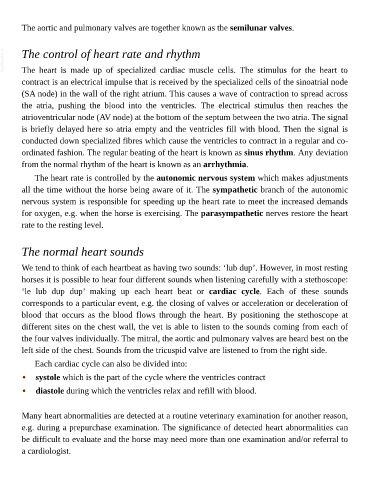 for oxygen, e.g. when the horse is exercising. The parasympathetic nerves restore the heart