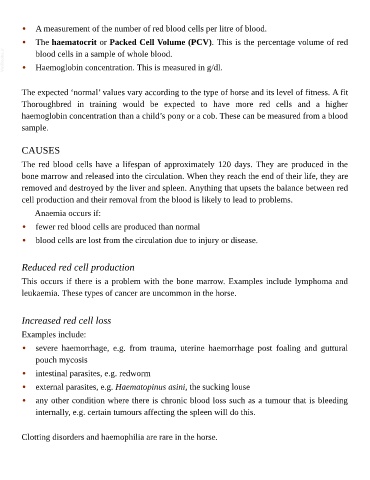 haemoglobin concentration than a child’s pony or a cob. These can be measured from a blood