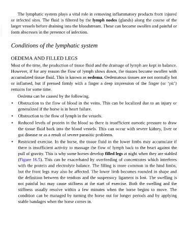 pull of gravity. This is why some horses develop filled legs at night when they are stabled