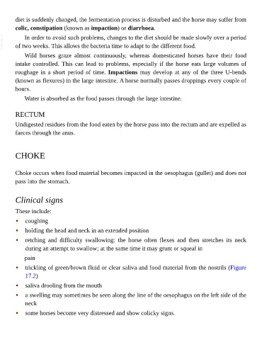 diet is suddenly changed, the fermentation process is disturbed and the horse may suffer from