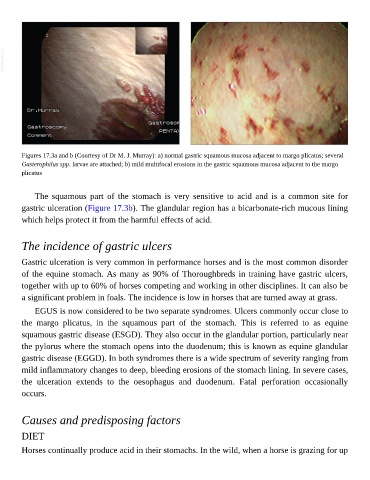 the margo plicatus, in the squamous part of the stomach. This is referred to as equine