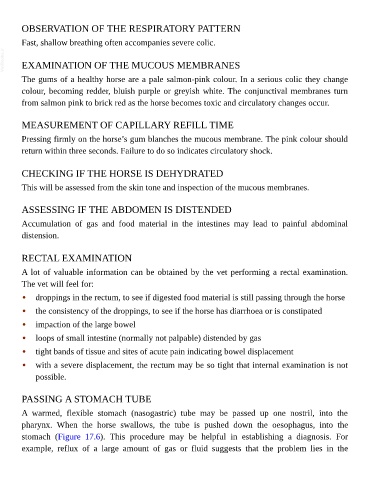 • droppings in the rectum, to see if digested food material is still passing through the horse