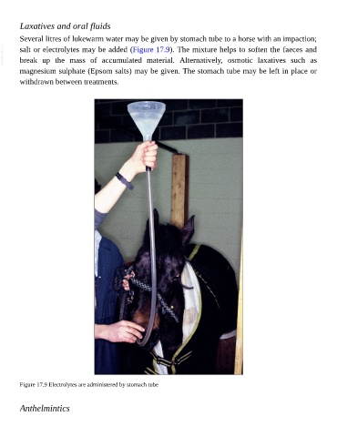 VetBooks.ir salt or electrolytes may be added (Figure 17.9). The mixture helps to soften the faeces and