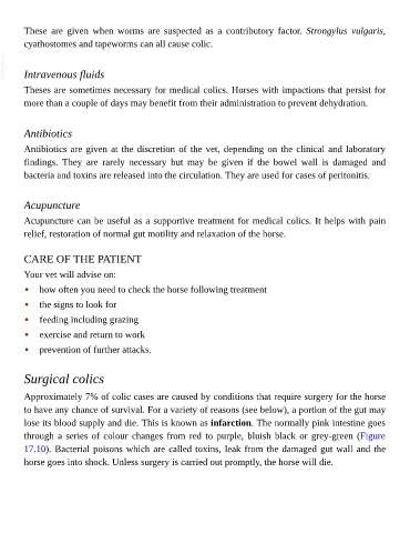 horse goes into shock. Unless surgery is carried out promptly, the horse will die.