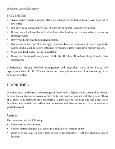 • Sudden dietary changes, e.g. access to lush grass or a change of hay.