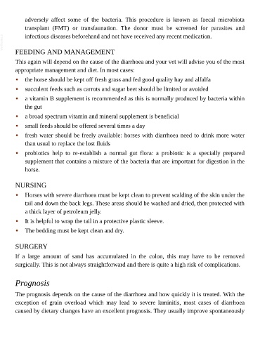 • Horses with severe diarrhoea must be kept clean to prevent scalding of the skin under the
