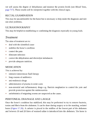 vet will assess the degree of dehydration and monitor the protein levels (see Blood Tests,