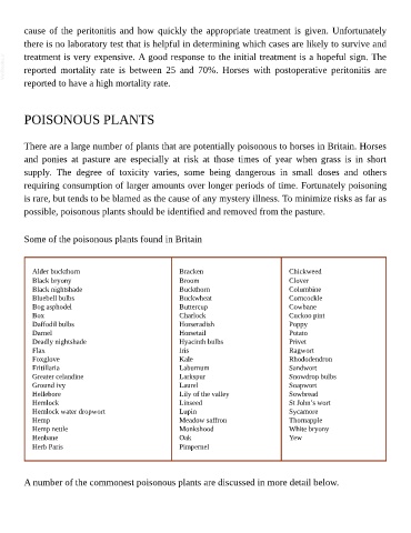 reported mortality rate is between 25 and 70%. Horses with postoperative peritonitis are