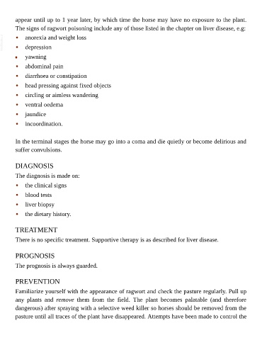 appear until up to 1 year later, by which time the horse may have no exposure to the plant.