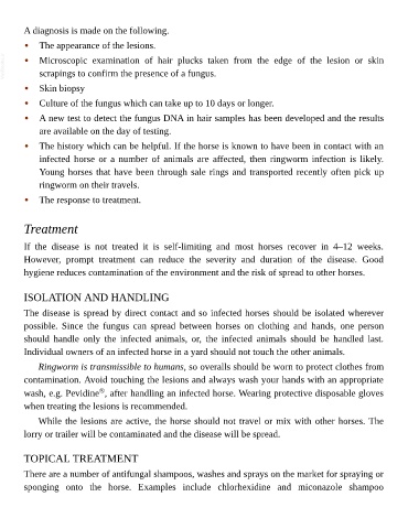 infected horse or a number of animals are affected, then ringworm infection is likely.