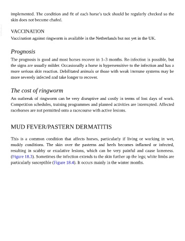 muddy conditions. The skin over the pasterns and heels becomes inflamed or infected,