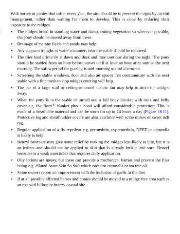 • If at all possible affected horses and ponies should be moved to a midge-free area such as