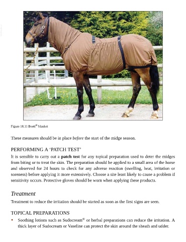from biting or to treat the skin. The preparation should be applied to a small area of the horse