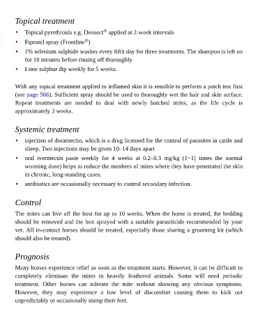 treatment. Other horses can tolerate the mite without showing any obvious symptoms.