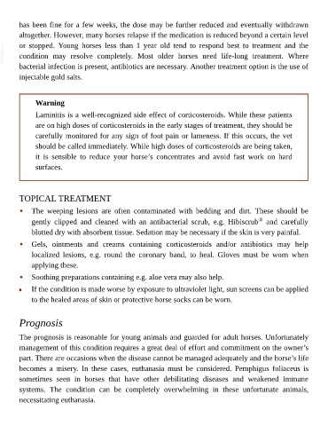 localized lesions, e.g. round the coronary band, to heal. Gloves must be worn when