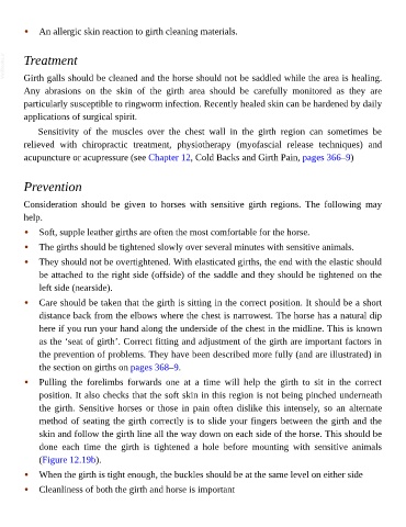 the girth. Sensitive horses or those in pain often dislike this intensely, so an alternate