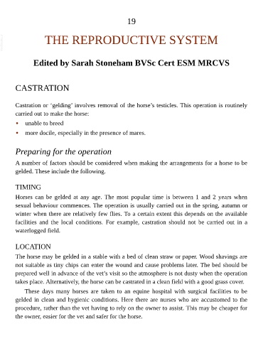 takes place. Alternatively, the horse can be castrated in a clean field with a good grass cover.