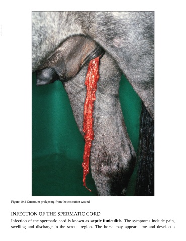swelling and discharge in the scrotal region. The horse may appear lame and develop a