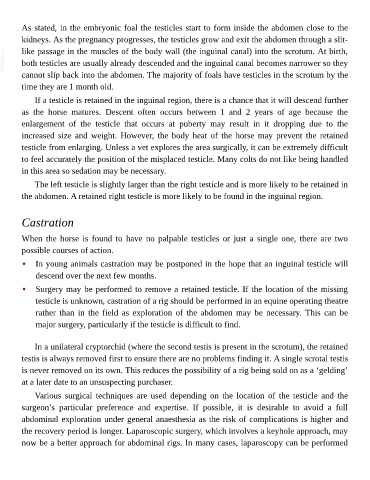 cannot slip back into the abdomen. The majority of foals have testicles in the scrotum by the