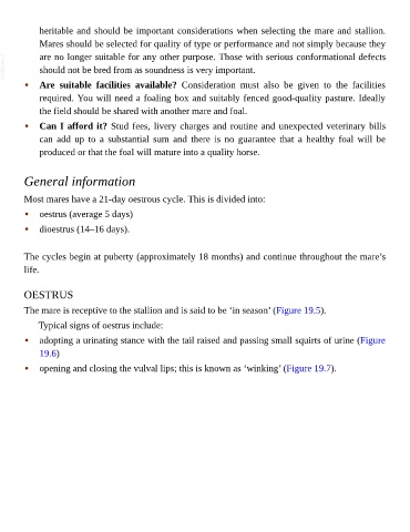 The mare is receptive to the stallion and is said to be ‘in season’ (Figure 19.5).