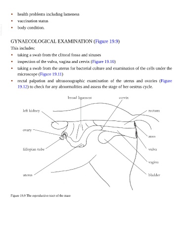 19.12) to check for any abnormalities and assess the stage of her oestrus cycle.