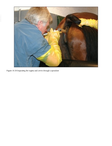 VetBooks.ir Figure 19.10 Inspecting the vagina and cervix through a speculum