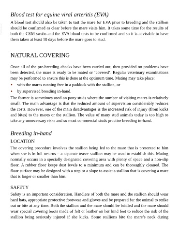 out or bite at any time. Both the stallion and the mare should be bridled and the mare should