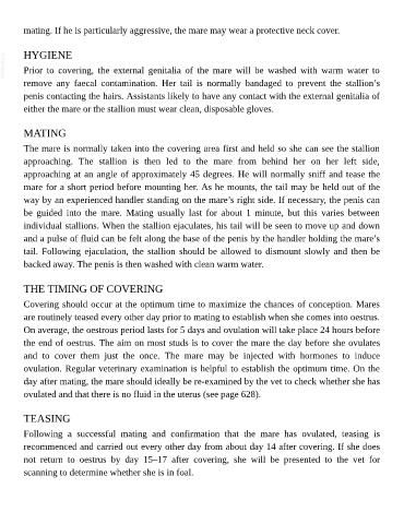 mating. If he is particularly aggressive, the mare may wear a protective neck cover.